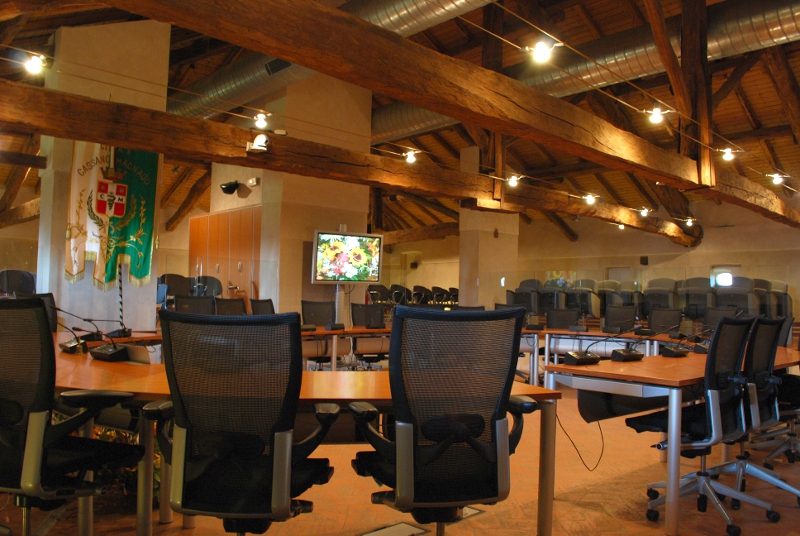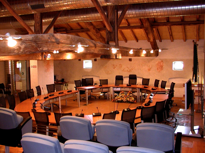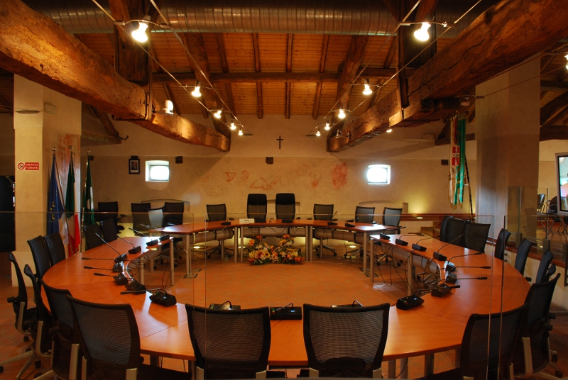 Ricavata dal Restauro del sottotetto, colpisce il contrasto tra l’ambiente antico del soffitto a travi e del pavimento in cotto, entrambi originari, con gli arredi e impianti (audio-video) in dotazione, estremamente moderni.La sala è prioritariamente riservata alle riunioni del Consiglio Comunale, ma può essere destinata anche a cerimonie civili, conferenze, convegni ecc..